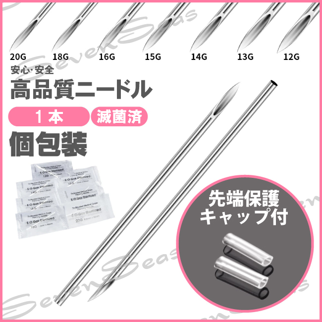 最高評価 複数購入がお得 送料無料 高品質ニードル 各サイズ ピアス 12G 13G 14G 15G 16G 18G 20G 個包装 サージカルステンレス 先端保護カバー付 練習用 お試し