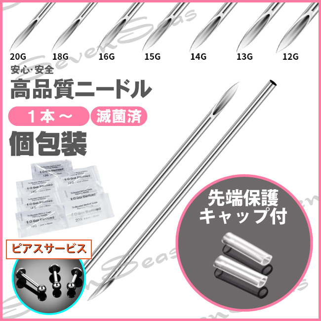 ピアス サービス 最安 ニードル 大好評 送料無料 各サイズ 12G 13G 14G 15G 16G 18G 20G 個包装 軟骨 清潔 サージカルステンレス 先端保護カバー付 おまけ有