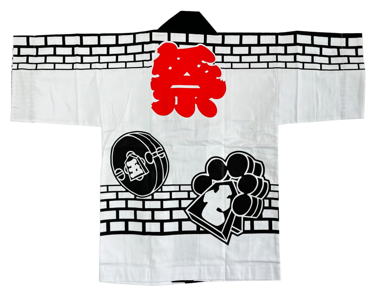 鉢巻とソロバン玉柄の半纏帯がセットになっております。