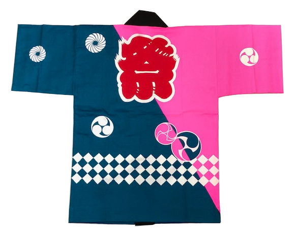 鉢巻とソロバン玉柄の半纏帯がセットになっております。