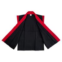 子ども用 袖無し法被 本体黒・赤衿 4・5・7号 法被 半纏 はっぴ ハッピ 和太鼓 八木節 よさこい 祭