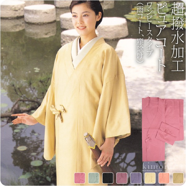 着物 塵除け 雨コート 通年用 一部式 ピュアコート 携帯袋付 道中衿 撥水加工 和装 雨具 レインコート レディース