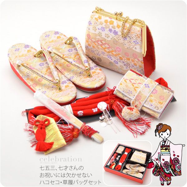 七五三、七才さんのお祝いには欠かせないハコセコ・草履バッグセットです。
