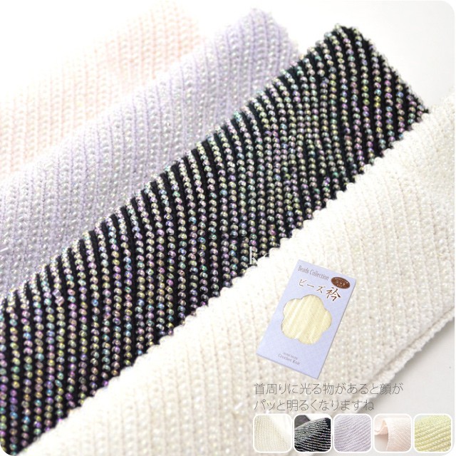 洗える 半衿 ビーズ 半襟 通年用 カラー ビーズ 半衿 ニットタイプ 小紋 紬 夏着物 浴衣用 綿 レディース