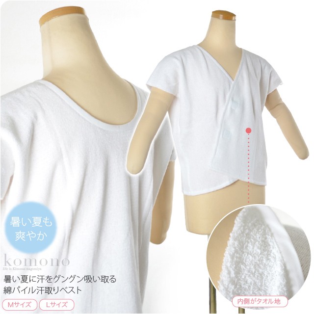 肌襦袢 通年用 日本製 和装 汗取りベスト 綿パイル タオル地 和装 下着 肌着 着物 インナー レディース