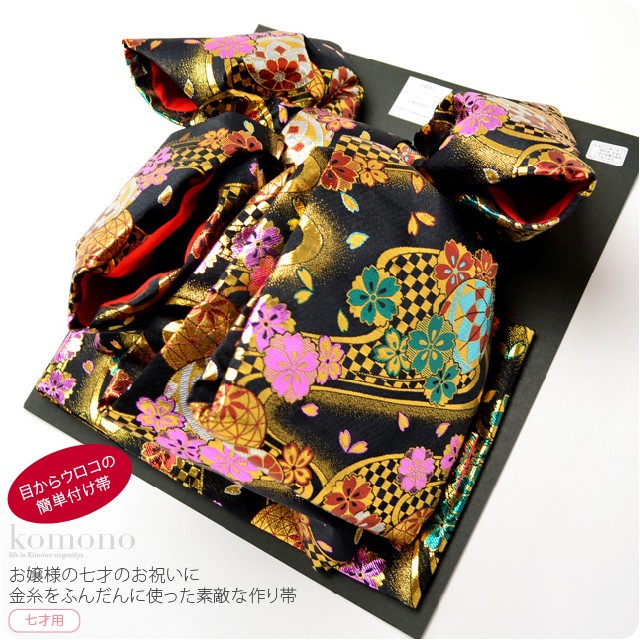 胴に巻く所とリボンが別になっている豪華な二部式の女の子、七才お祝い用の作り帯です。