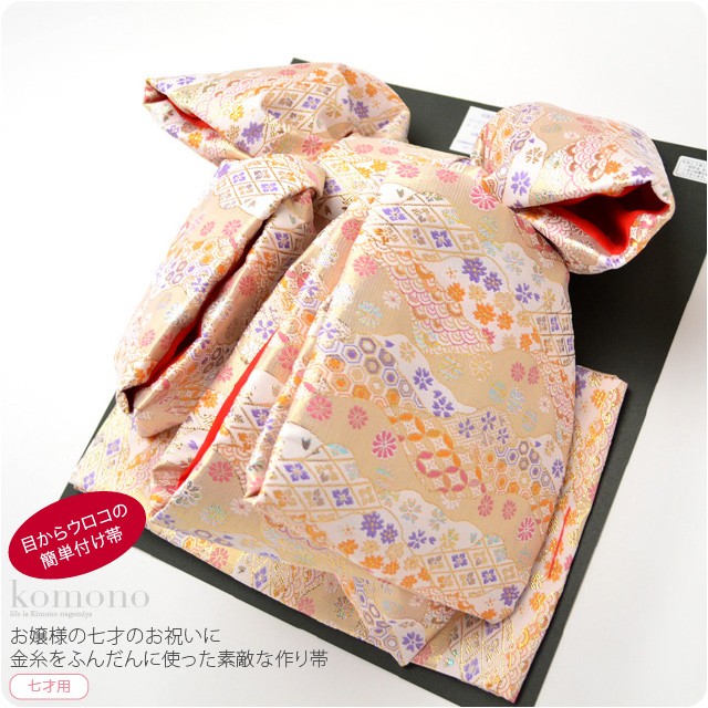 七五三 帯 7歳 通年用 日本製 子供用 結び帯 小紋柄 紋尽くし 24 753 作り帯 付け帯 ワンタッチ 帯 キッズ