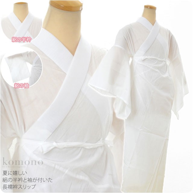 夏に嬉しい絽の半衿と袖が付いた長襦袢スリップです。