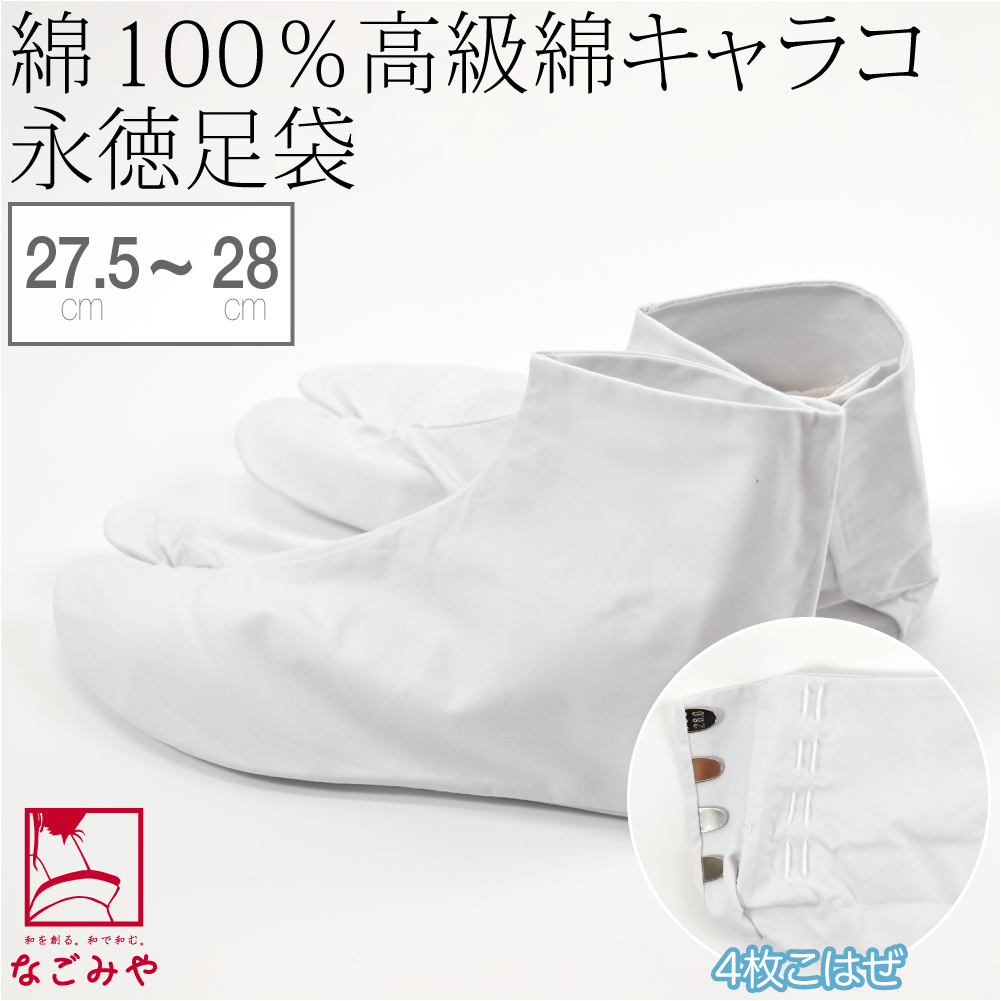 足袋 こはぜ付き 通年用 日本製 永徳 綿キャラコ 白足袋 たび コハゼ付き メンズ