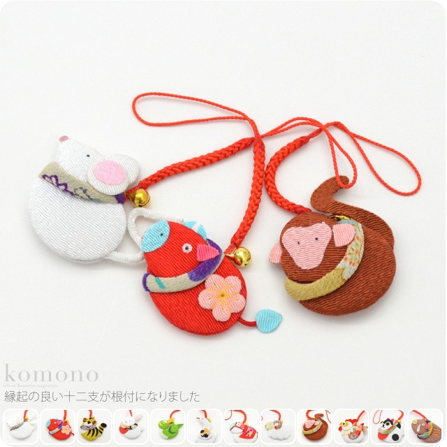 和柄 根付け 通年用 日本製 夢み屋 干支 ちりめん ストラップ 十二支 飾り チャーム ユニセックス