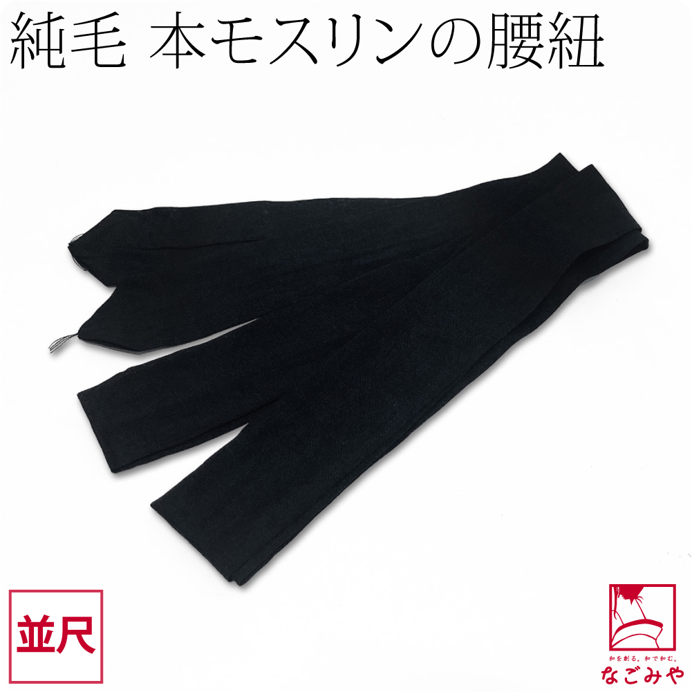 着付け小物 お葬式 喪服 通年用 日本製 純毛 本モスリン 腰紐 黒 並尺 腰ひも 標準タイプ 不祝儀 弔事 ブラックフォーマル レディース