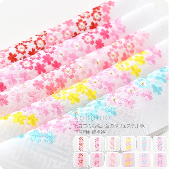 七五三 半衿 刺繍 半襟 通年用 日本製 子供用 刺繍半衿 桜柄 ポリエステル 753 刺繍衿 刺繍襟 3歳 三歳 7歳 七歳 キッズ