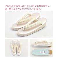 中央の芯と花緒にはバッグと同じ生地を使用し、統一感と華やかさをプラスしています。