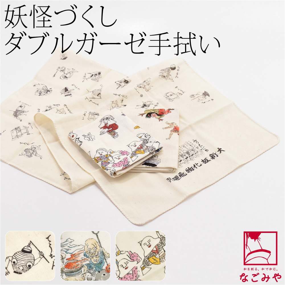 ダブル ガーゼ 手ぬぐい 通年用 日本製 彩 妖怪づくし 手拭い 粗品 プチギフト お年賀 年始挨拶 内祝い お祝い 暑さ 熱中症 対策 ユニセックス