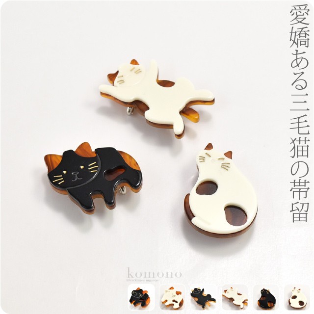 帯留め 通年用 日本製 三毛猫 帯留 三分紐用 金具付 レディース