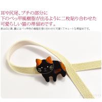 耳や尻尾、ブチの部分に下のべっ甲風樹脂が出るように二枚貼り合わせた可愛らしい猫の帯留めです。