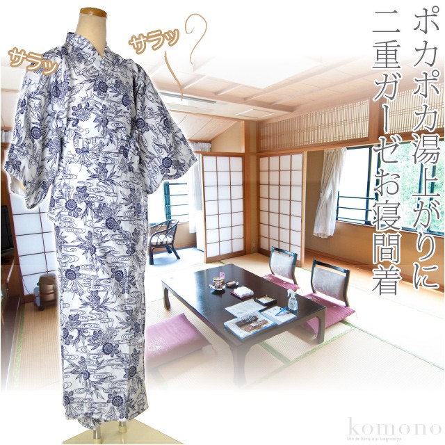 寝間着 浴衣 通年用 日本製 女物 寝巻き浴衣 花蕾ガーゼ 二重袷 温泉旅館 部屋着 寝巻き ゆかた レディース