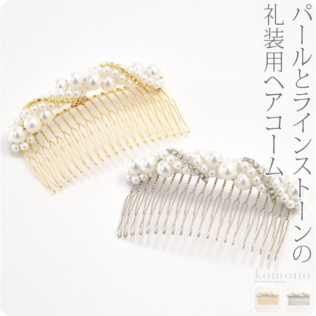 程よい大きさのパールとラインストーンを組み合わせた礼装用ヘアコームです。
