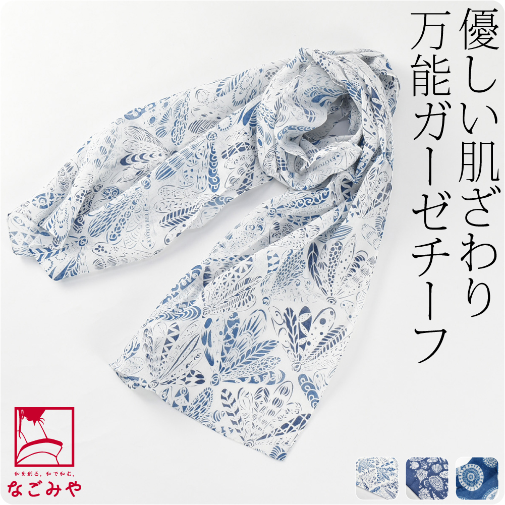 着物 ストール 通年用 日本製 彩 KYOTO BLUE ガーゼチーフ UVケア 和装用 洋装用 襟巻 マフラー レディース