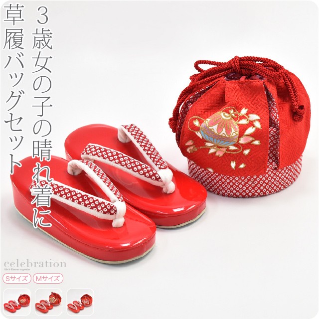 七五三 草履 バッグ セット 3歳 通年用 日本製 WASOUL 草履 巾着 セット 鹿の子 753 履物 巾着袋 キッズ