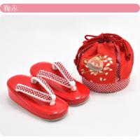草履の花緒と巾着の底にお揃いの鹿の子柄をあしらいました。