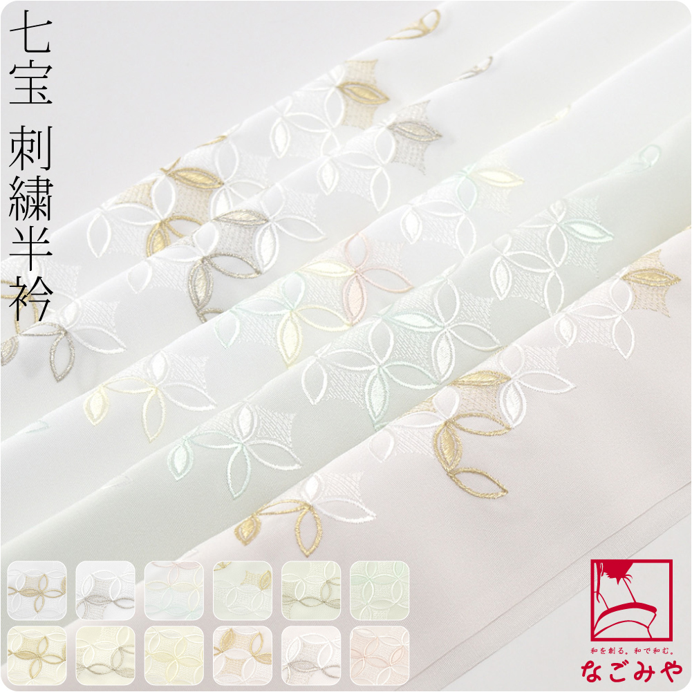 半衿 刺繍 半襟 袷用 日本製 和彩 刺繍カラー半衿 七宝 留袖 振袖 訪問着 色無地用 ポリエステル レディース