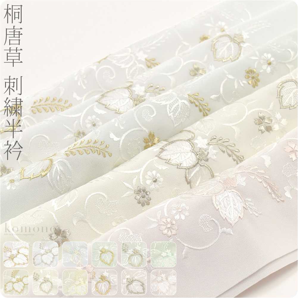 半衿 刺繍 半襟 袷用 日本製 和彩 刺繍カラー半衿 桐唐草 留袖 振袖 訪問着 色無地用 ポリエステル レディース