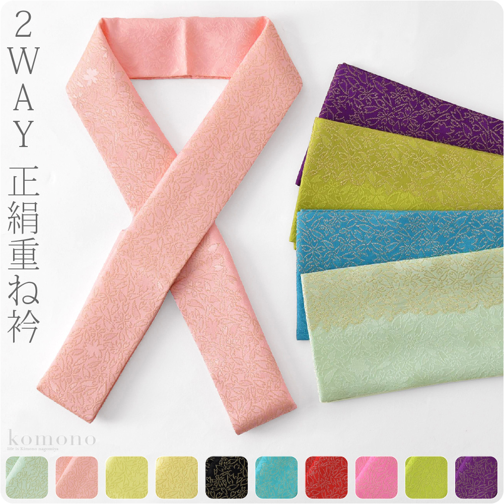 伊達衿 重ね衿 袷用 日本製 正絹 重ね衿 2WAY 桜地紋 93680 留袖 訪問着 色無地用 伊達襟 重ね襟 広衿 レディース