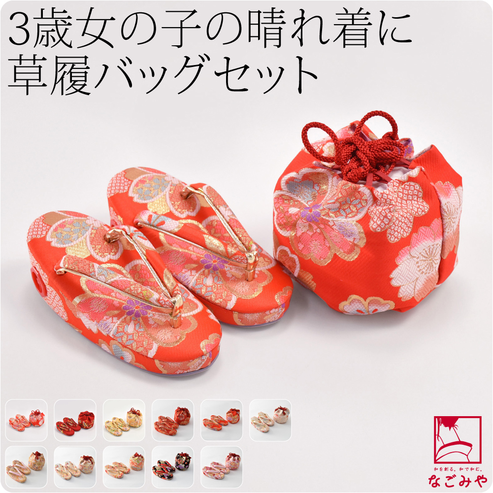 3歳女の子の晴れ着に、草履バッグセットです。