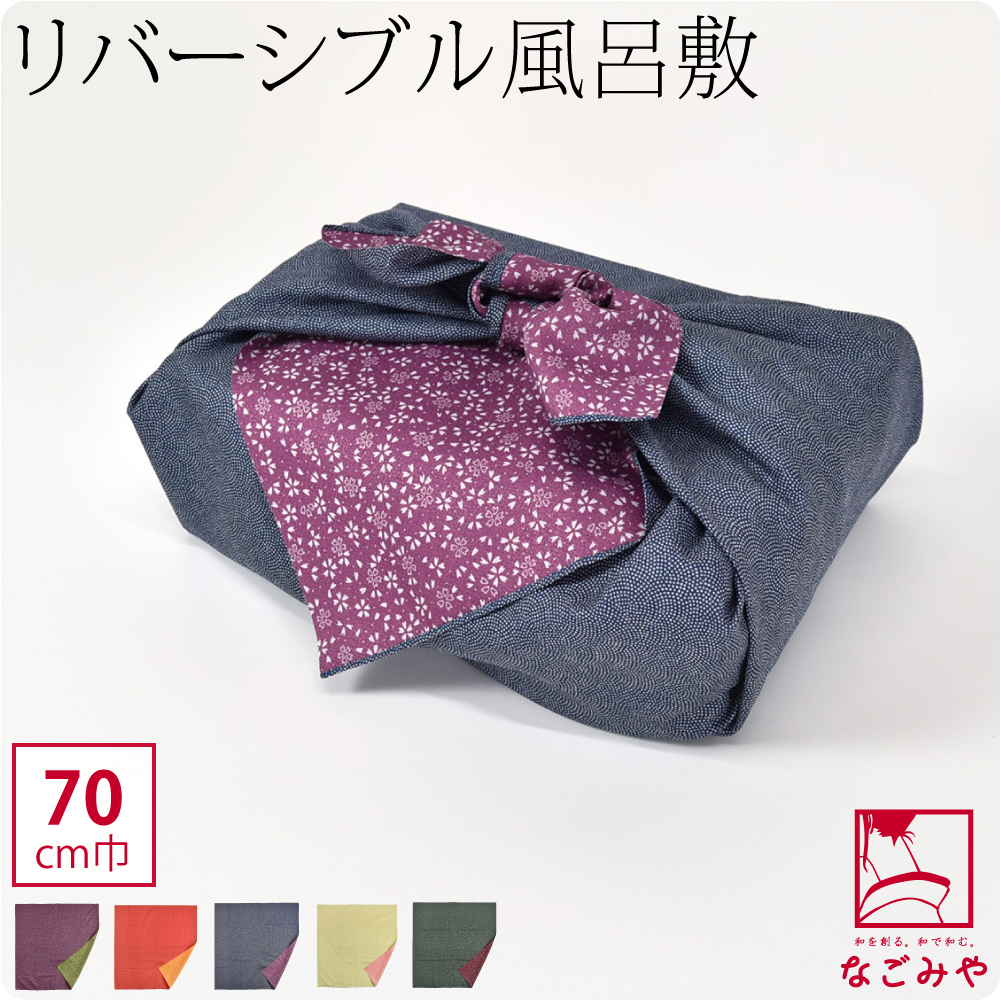 両面リバーシブルのふろしきで、ポリエステル素材なので洗濯可能。