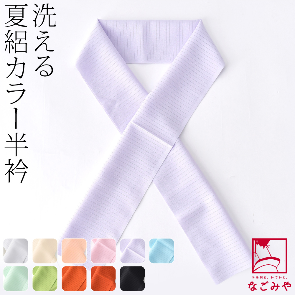 洗える 半衿 カラー 半襟 夏用 日本製 夏絽 色半衿 シルエステル 着物全般用 ポリエステル レディース