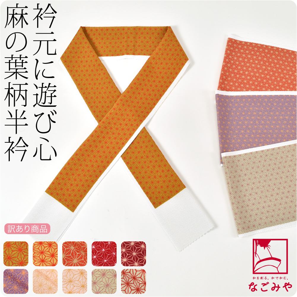衿元に遊び心麻の葉柄半衿