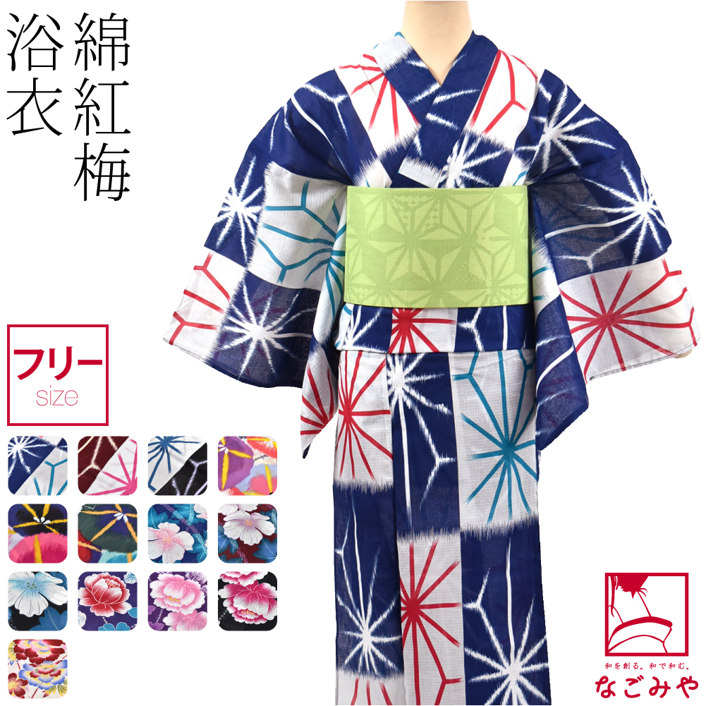 気楽に着られる大人浴衣として人気の綿紅梅はサラサラ肌触り抜群です。