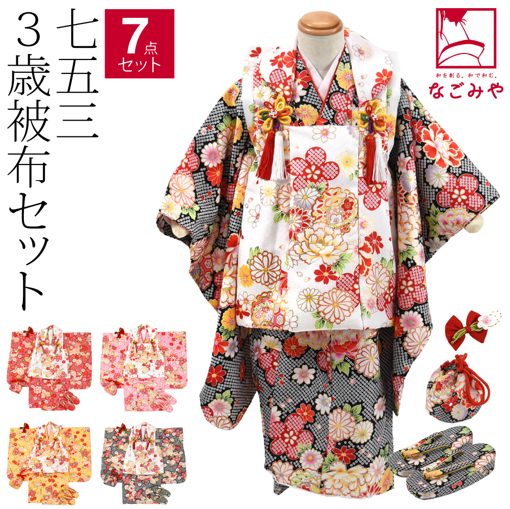 3歳のお祝いに愛らしい色柄の被布セットです。