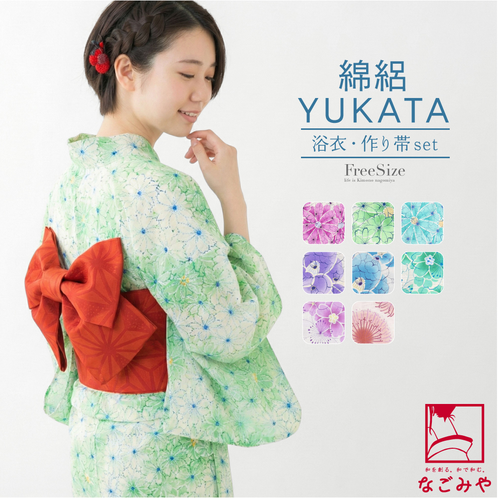 ※浴衣と作り帯のセットでの販売です。写真の下駄などは商品に含まれません。