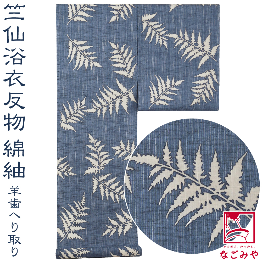 反物 浴衣地 夏用 日本製 竺仙 綿紬 羊歯へり取り 江戸注染染めブランド 美しいキモノ掲載常連 レディース