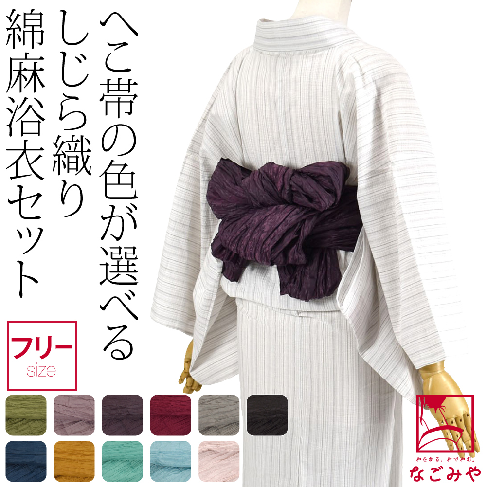 大人浴衣として人気の綿麻しじら織り浴衣としわ兵児帯2点セットです。