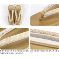 鼻緒は古典柄の帯地。台の色に合わせて金糸、銀糸が織り込まれ、上品な煌めき。