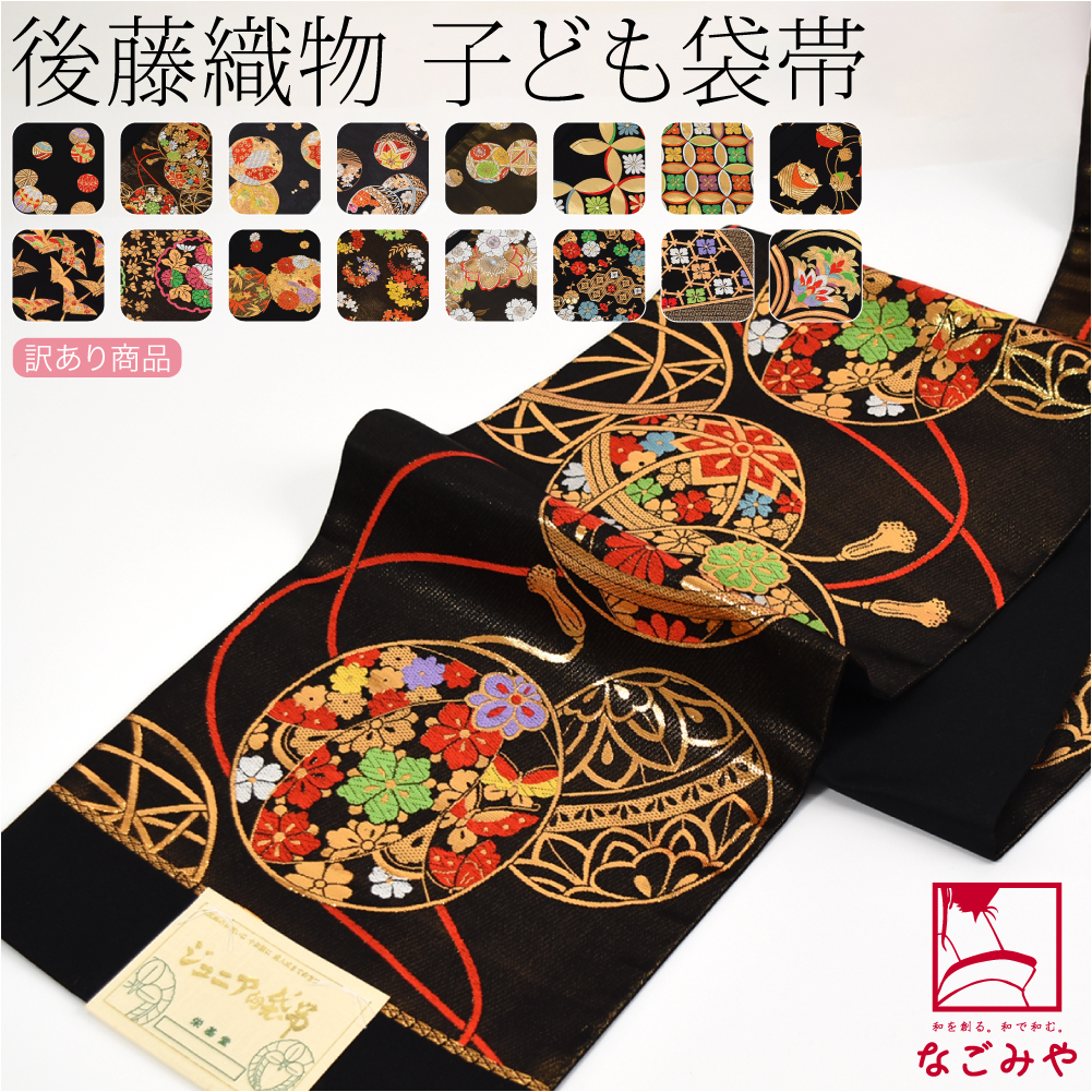 七五三 帯 7歳 袷用 日本製 訳あり 正絹 袋帯 子供用 古典柄 後藤織物 黒系 753 手結び帯 平帯 キッズ