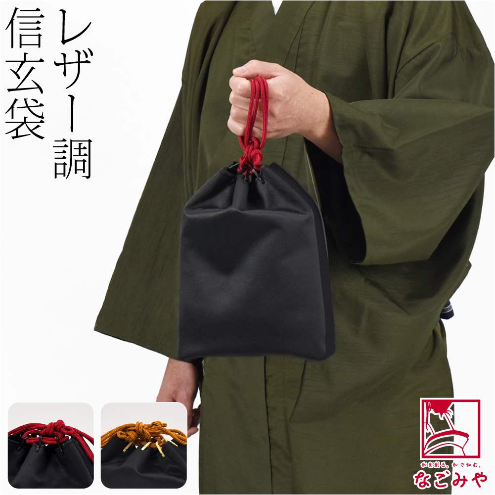 スタイリッシュなレザー調信玄袋。男の方だけではなく女の方にもおすすめです。