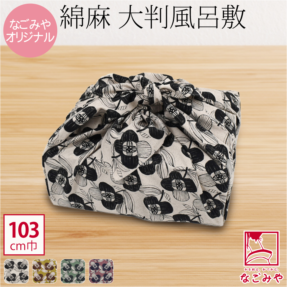 手書き風のアートな花柄がかわいい、なごみやオリジナルの三巾風呂敷です。