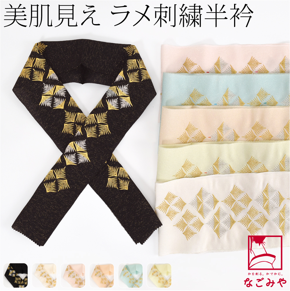 半衿 刺繍 半襟 袷用 日本製 正絹 刺繍カラー半衿 松菱 成人式 振袖用 絹100% レディース