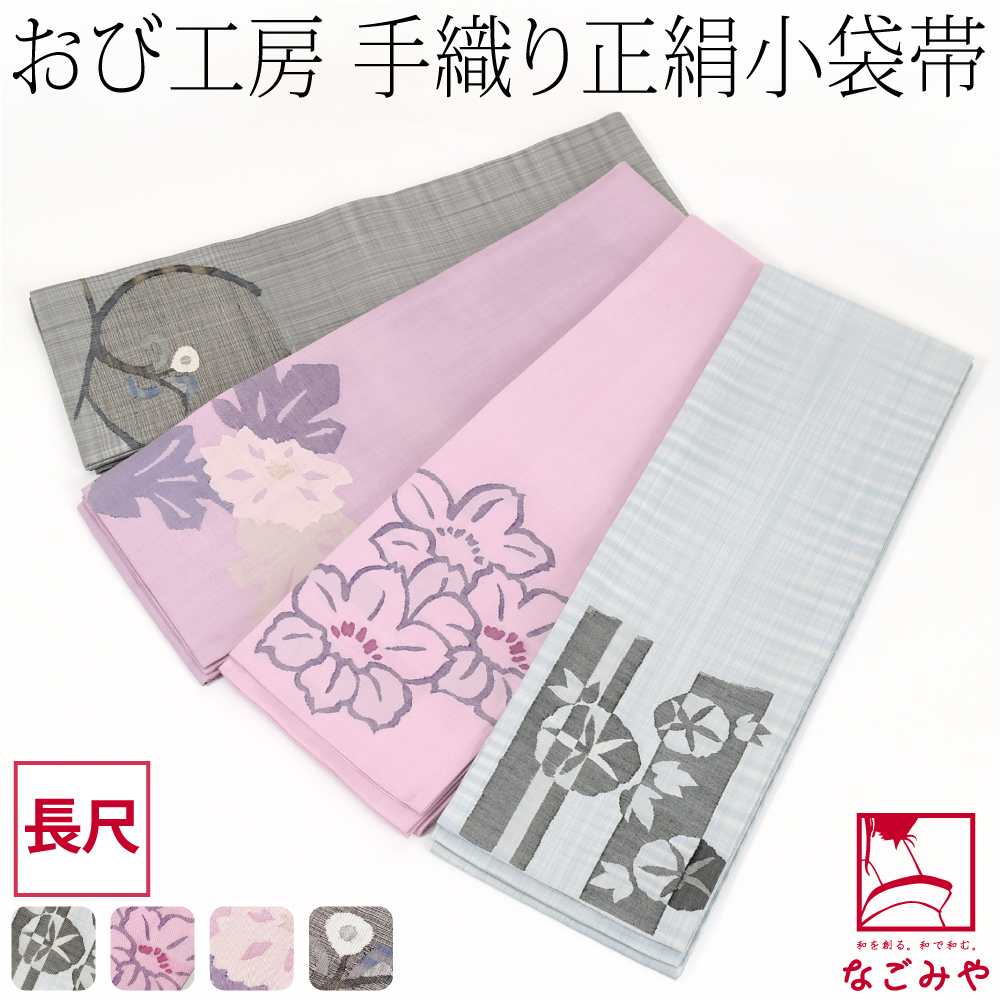 半幅帯 正絹 通年用 日本製 手織り 小袋帯 絹100% 長尺 半巾帯 細帯 小紋 紬 袴下 浴衣 帯 だけ レディース