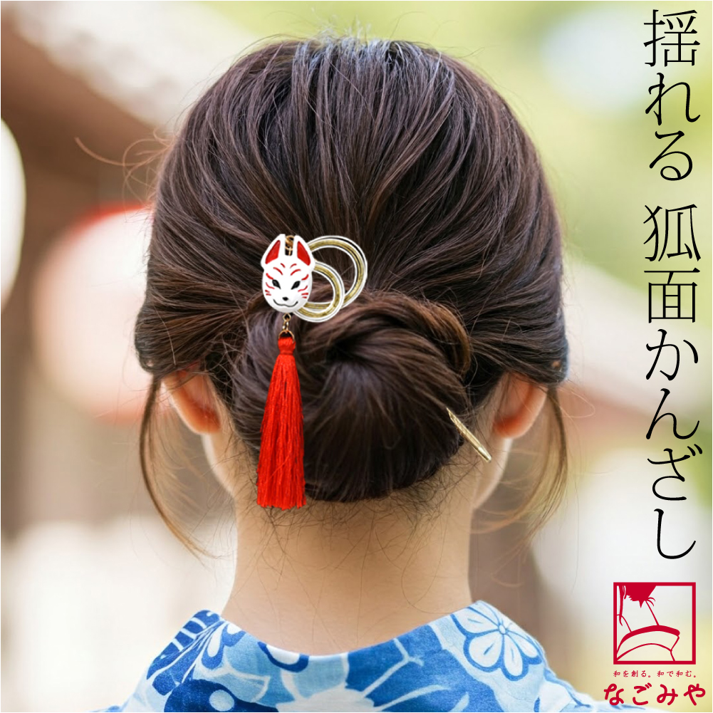 揺れる狐面かんざし