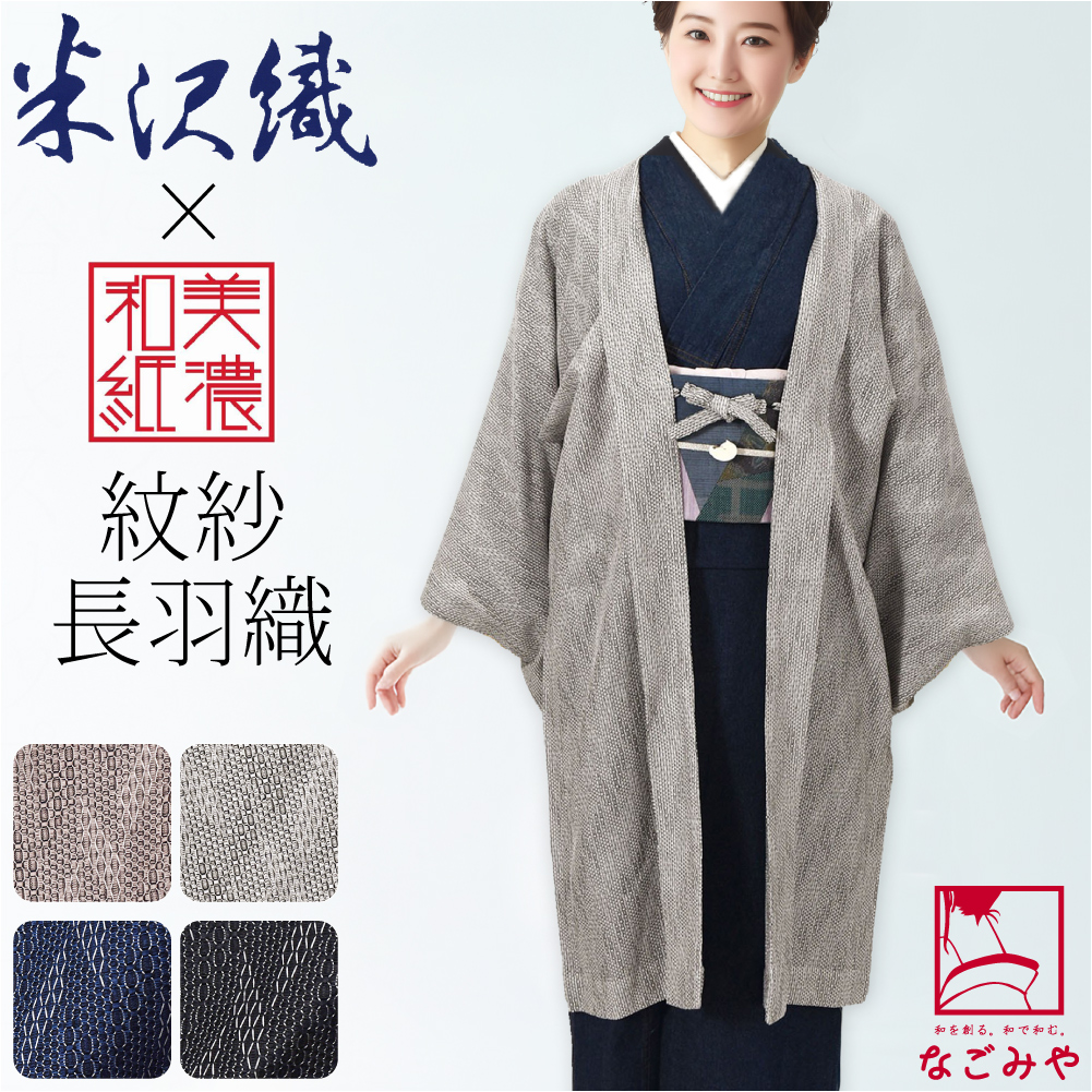 軽やか紋紗に宿る大人の洗練。美濃和紙(R)の涼感と米沢織(R)の品格が響き合う長羽織。