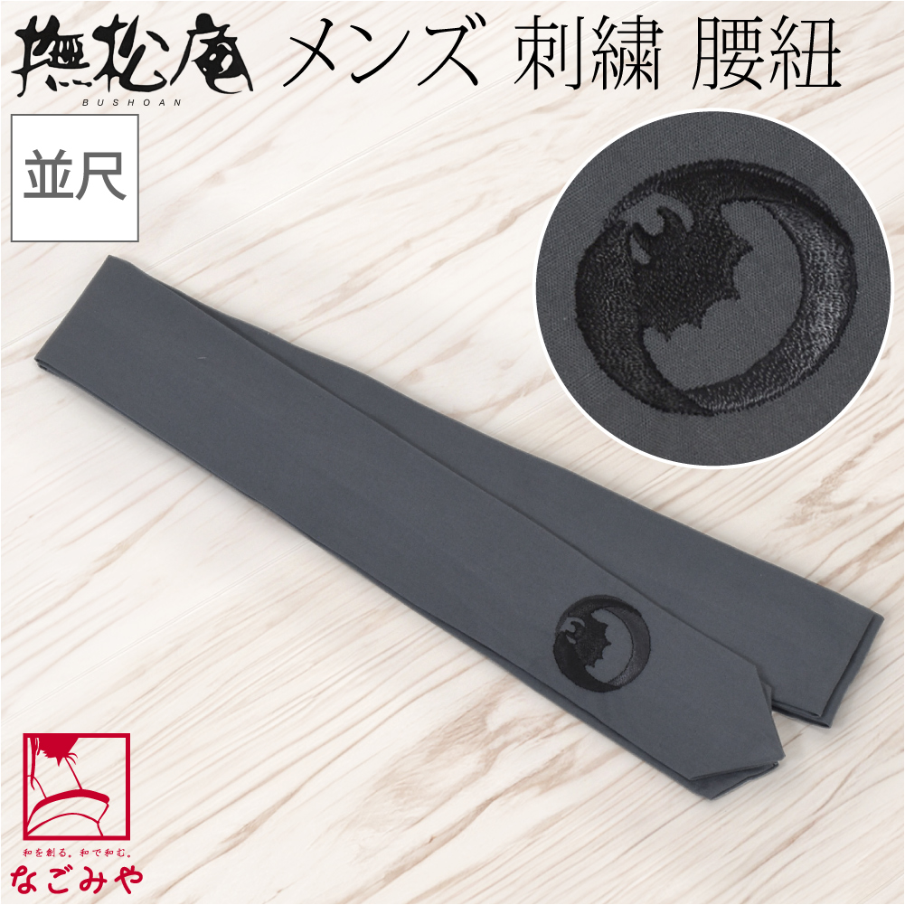 暗い三日月に蝙蝠が重なる小粋な刺繍。気分が上がる、撫松庵のスタイリッシュ腰紐。