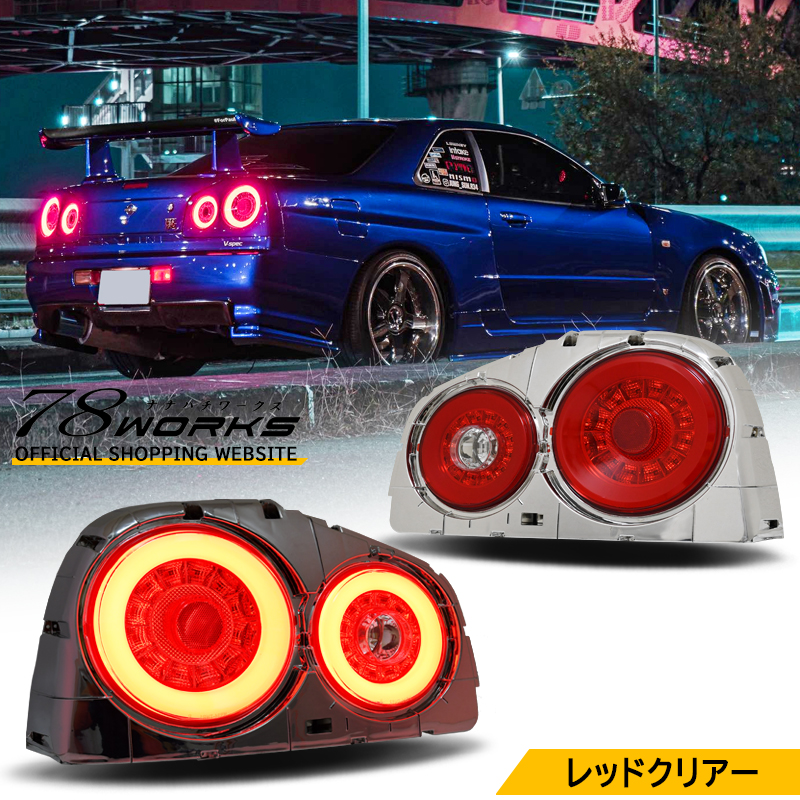 34 R34 スカイライン GT GT-R 2ドア クーペ BNR ENR ER HR ファイバー LED テールランプ レッドクリアー