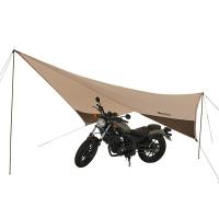 設営簡単!高さ約180cmのウイング型タープ高さ約180cmでさらに使い勝手がよくなったタープは、耐風性にすぐれたウイング型。「Tradcanvas リビング・DUO-BA」などのテントと相性抜群で、リビングスペースや駐輪スペースを確保する。通常より必要とするペグの本数が少ないので設営簡単&およそ2.8kgと軽量。