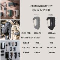 従来品より容量が倍となったカラビナとモバイルバッテリーダブル!カバンやリュックに引っ掛けられるカラビナ型のモバイルバッテリーから、倍の容量となる6000mAhのダブルが新たに登場しました。