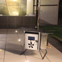 オーブン料理でキャンプが盛り上がる改良版の薪ストーブ冬の寒い時期のキャンプやアウトドアで使える頑丈でスリムなコンパクトな薪ストーブ。